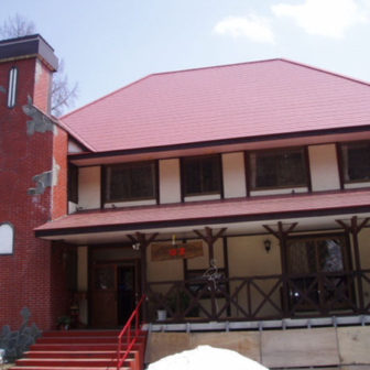 大きな煙突がある赤レンガの造りが印象的なペンションです。大きな道路沿いに建ち、最寄り駅のJR大糸線神城駅まで徒歩10分ほどで行く事が出来たり、約50mのと…